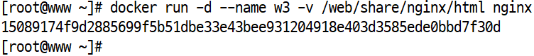 - 호스트의 "/usr/share/nginx/html" 디렉토리를 컨테이너 내부의 동일한 경로에 마운트합니다( name: w3 )