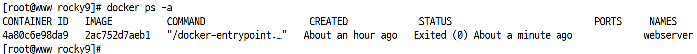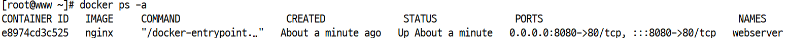 - docker container 리스트 확인 (상태 up , port 번호 바뀌었고 이름 webserver 확인)