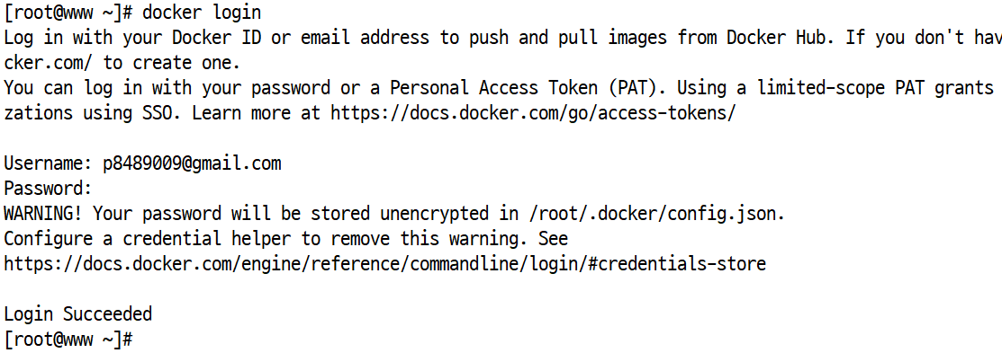 - docker login 후 logout 하면 아이디와 비밀번호 입력 안해도 접속 가능