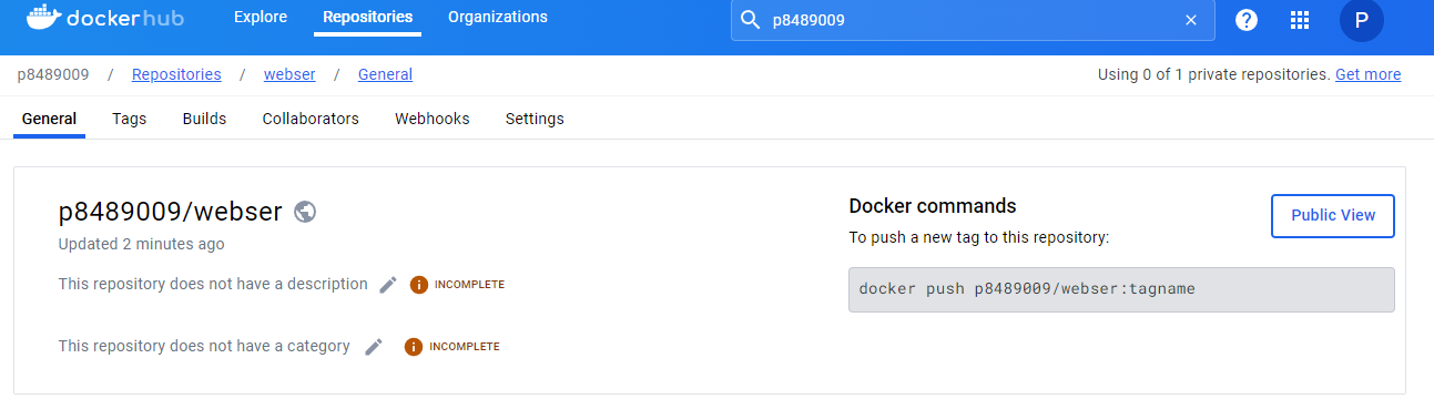 - docker image push를 이용해서 태그로 만든 이미지 업로드