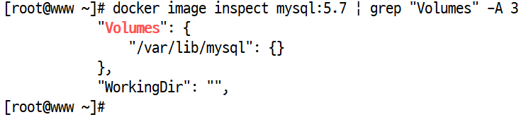 - mysql:5.7의 볼륨 설정을 확인 ( "Volumes" 섹션에서 "/var/lib/mysql" 경로가 비어있지 않고, 빈 객체로 표시, 해당 경로가 볼륨으로 설정되어 있음 )