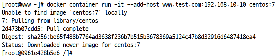 #docker container run -it --add-host www.test.com:192.168.10.10 cento