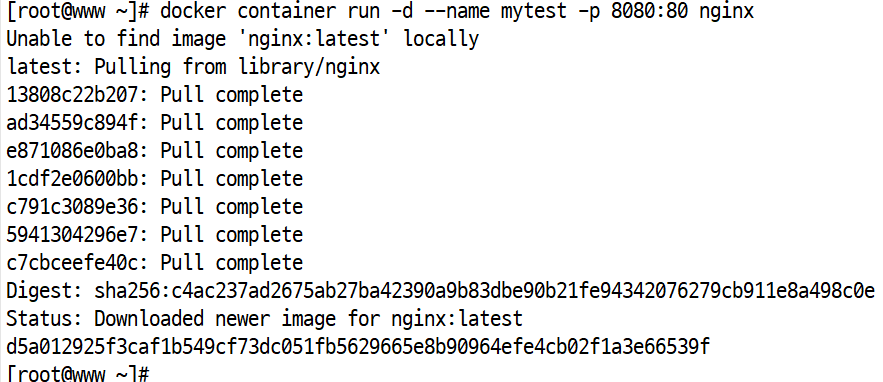 *nginx 이미지로 컨테이너 생성 이름은 mynginx 포트 설정(8080:80)