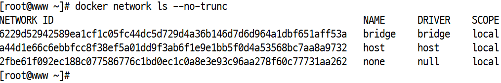 네트워크 리스트 확인 ( --filter 옵션 , --no-trunc: ID만 )