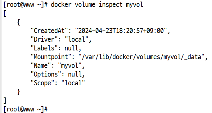 - 생성된 볼륨의 정보를 자세하게 확인 ( mount 지점 확인 )