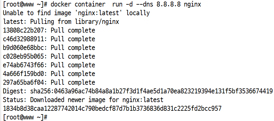 #docker container run -d --dns 8.8.8.8 nginx ⇒ 컨테이너에 DNS 설정