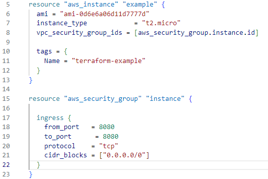 resource "aws_security_group" "instance" { ⇒ 보안그룹에 포트 지정