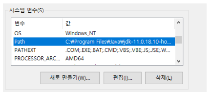 내컴퓨터 / 속성 / 고급시스템 설정 / 고급탭 선택 환경변수 /