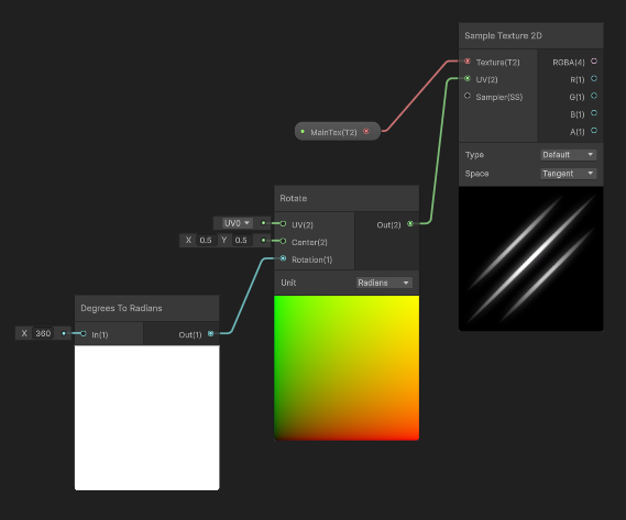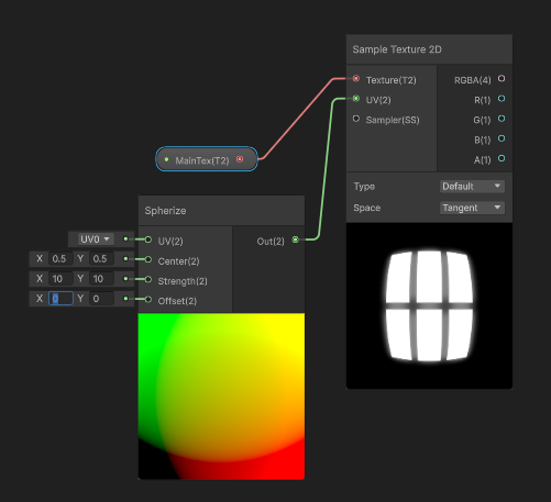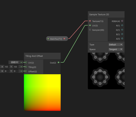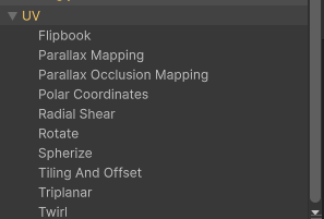 UV와 관련된 그래프들은 모두 텍스처 샘플링에 사용되는 UV를 변환하는 데 사용할 수 있다.