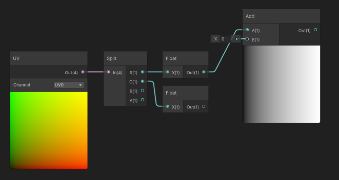 위 사진 같은 경우는, UV 좌표의 U 좌표를 확인 했을 때이다. 가로(축)이 증가하면서 하얀색으로 변하는 것을 확인할 수 있다.