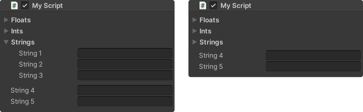 [EndFoldout]을 넣어야 그룹닫기가 되는 것 같다!