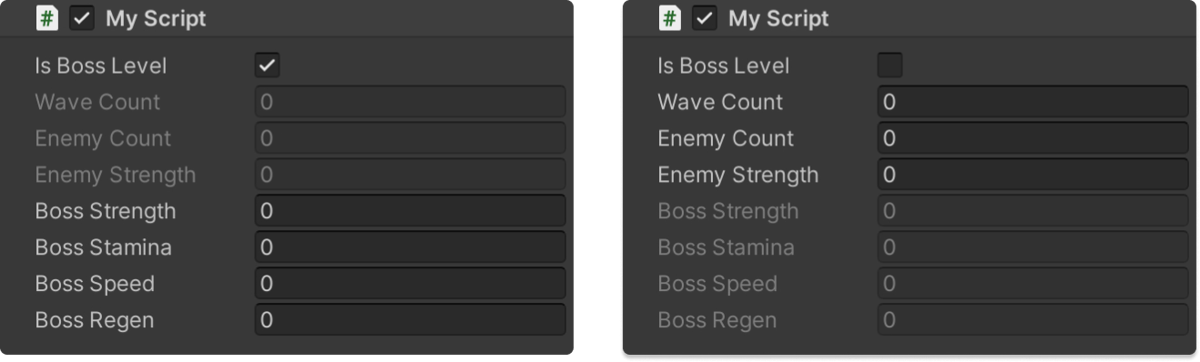 bool 변수에 값에 따라서 변경할 수 있는 변수의 값이 바뀐다.