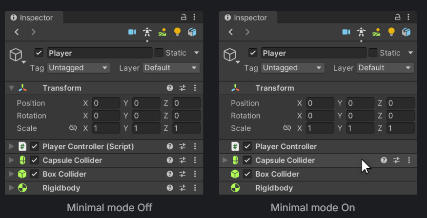 인스펙터에 특정 컴포넌트를 북마크 할 수 있다.