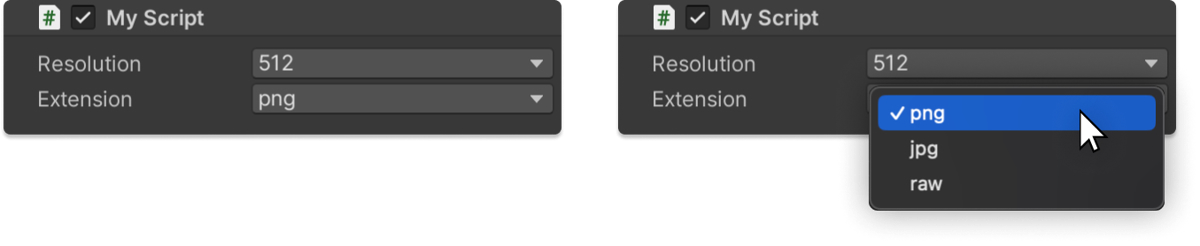 인스펙터에 들어갈 수 있는 값의 선택지를 줄 수 있는 것 같다.