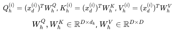 transformer의 각 head는 다음과 같이 Q, K, V 반환