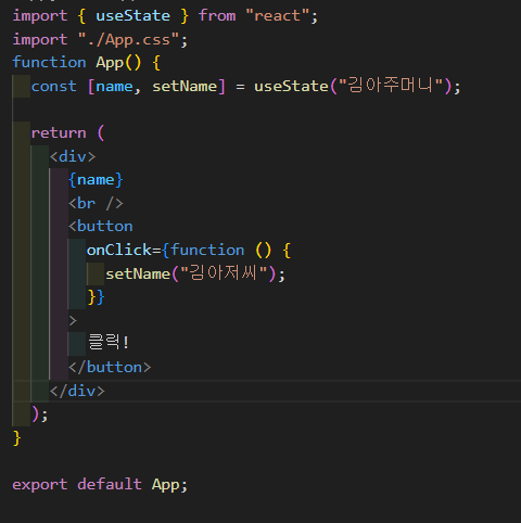 위와 같이 작성하면 버튼 클릭시 김아주머니가 => 김아저씨로 바뀐다