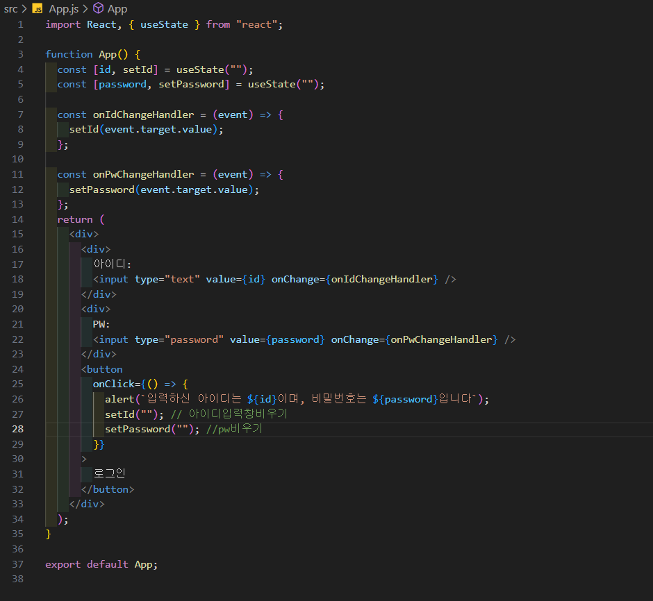 아이디 비밀번호 입력하면 알럿창에 나타나게 하기