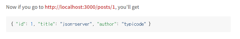{ "id": 1, "title": "json-server", "author": "typicode" }