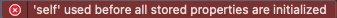 Swift의 초기화 규칙상, 모든 프로퍼티가 초기화되기 전에는 self를 사용할 수 없다.