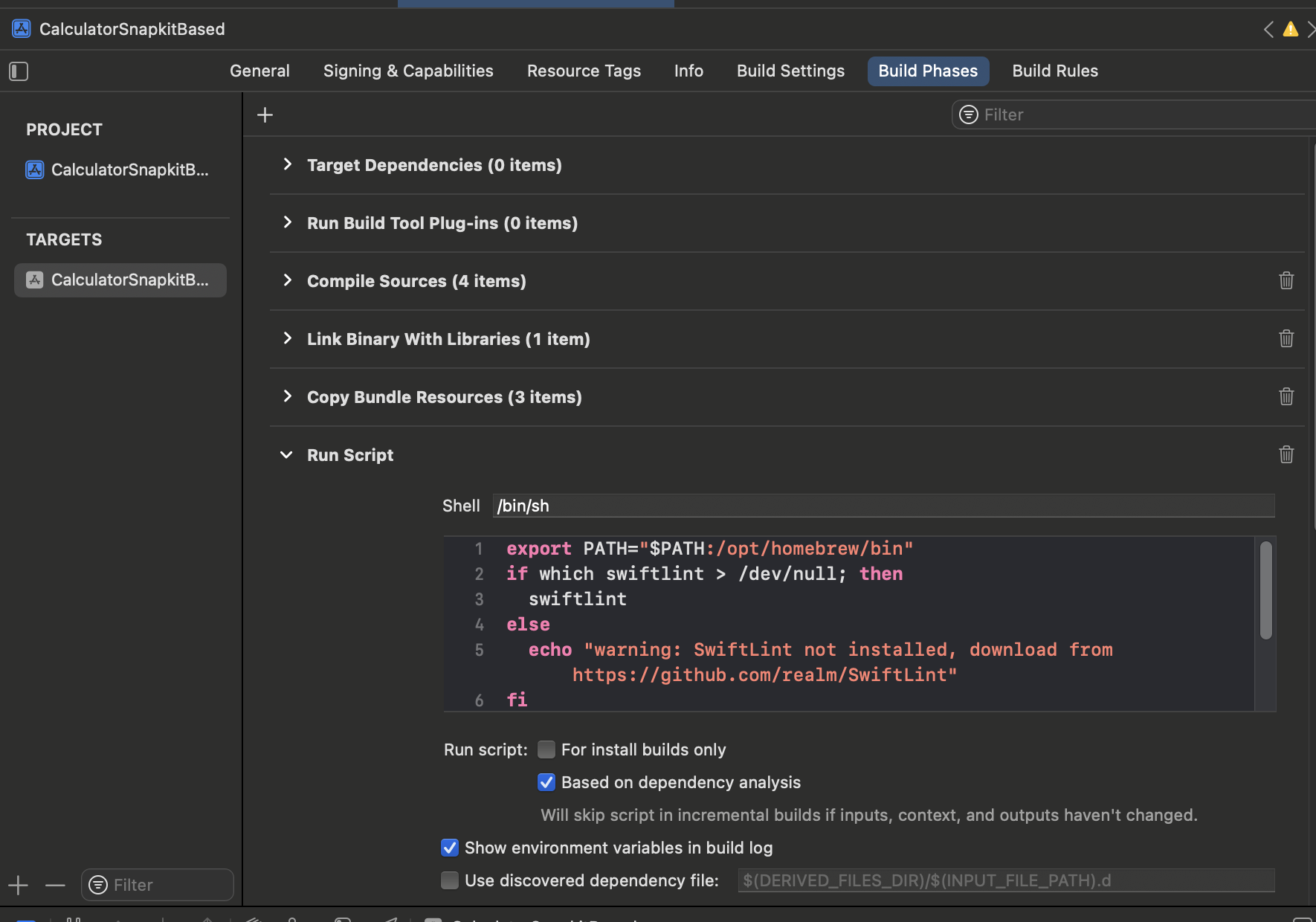 빌드 단계에서 SwiftLint가 실행되게 해 주는 단계이다.