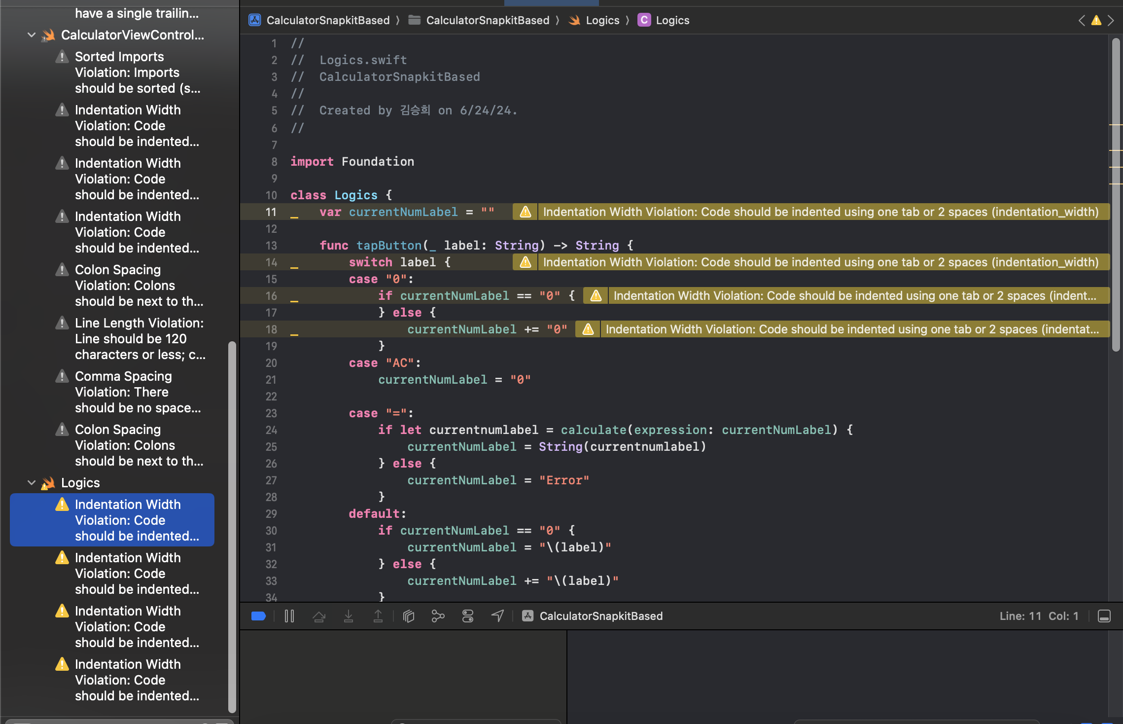 이 단계까지 마치면 코드에서 주의 표시를 볼 수 있다(고 하는데 난 오류가 계속 나서 해결하느라 이 단계 직후를 못봤다)