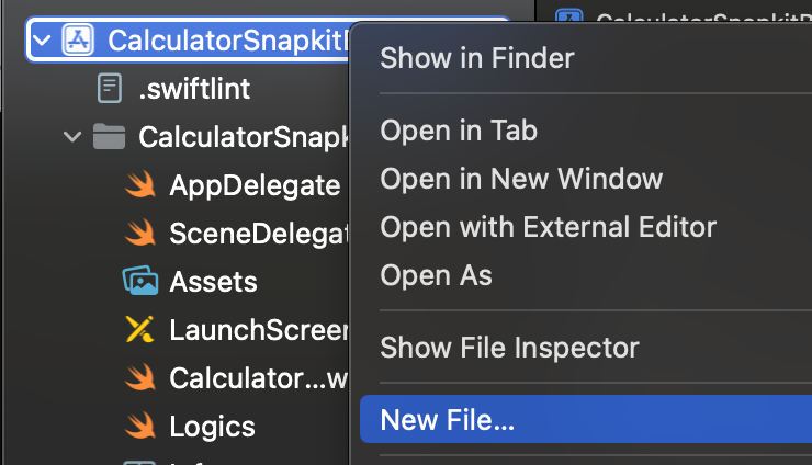 프로젝트 파일 단계(최상단) 에서 New File 클릭