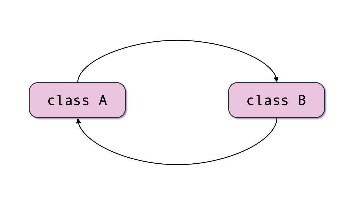: 아래 그림과 같이 서로가 서로를 참조하는 상황을 순환 참조라고 한다. 순환 참조는 메모리 누수를 발생시키는 대표적인 사례.
