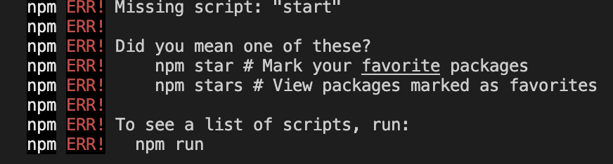 npm ERR! Missing script: "start"