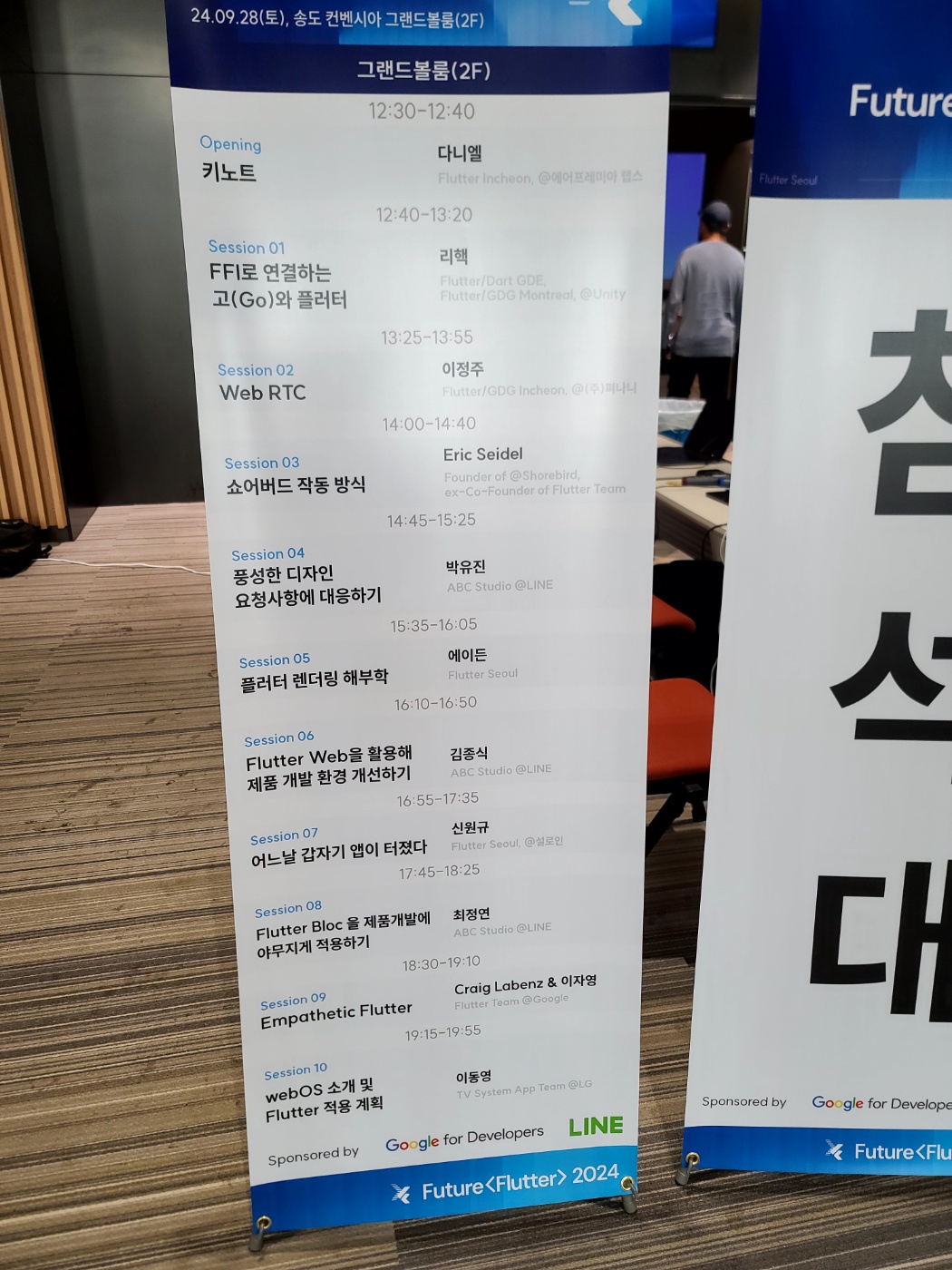 마침 세션에 LINE ABC Studio에서 데마이칸 일본 배달 앱을 플러터로 웹도 했다는 내용에 표를 예매하고 행사장에 갔었습니다.