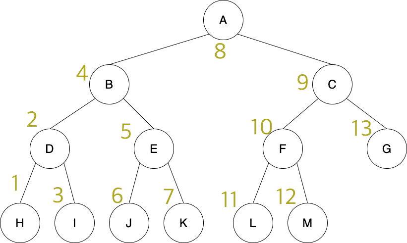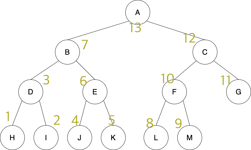 후위 순회는 왼쪽 → 오른쪽 → 루트 순서로 탐색한다.