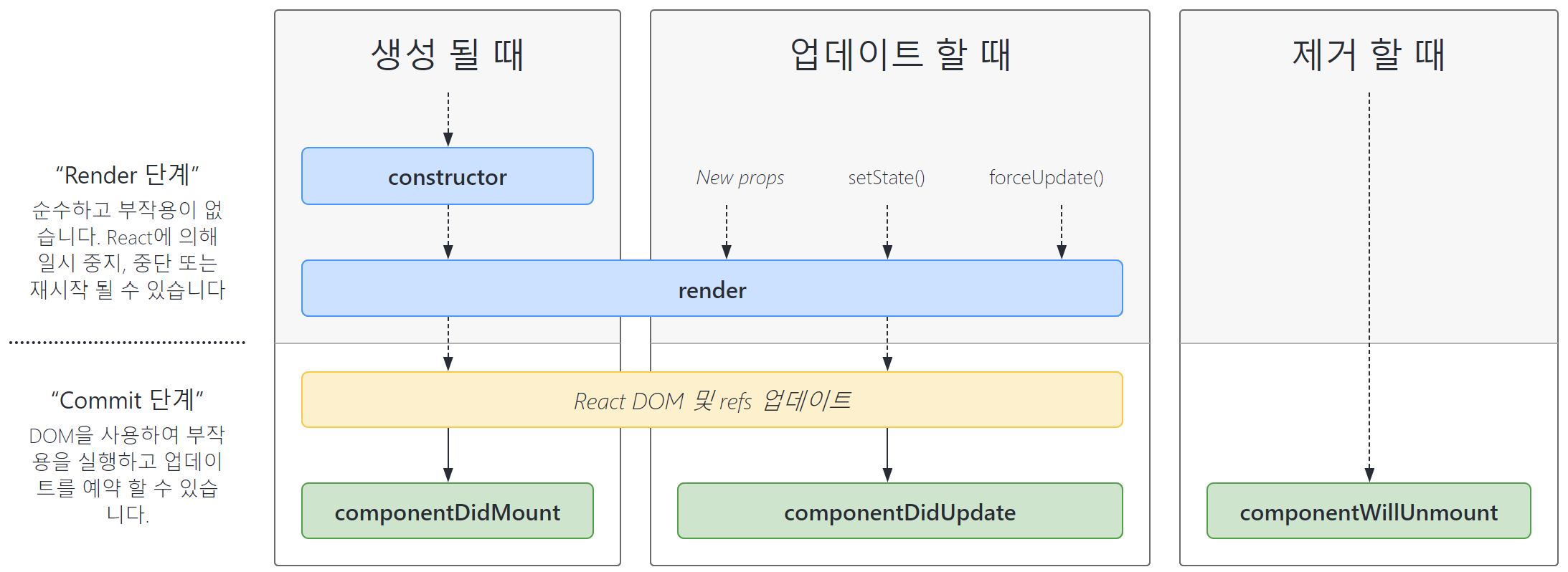 이런 메소드들을 리액트 생명주기(Life Cycle)라고 한다.