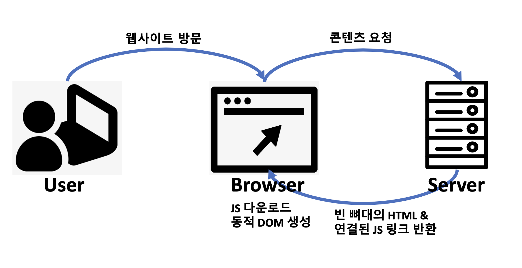 위에선 본 글의 주제인 CSR과 SSR의 동작원리에 대해 간단하게 살펴보았다. 그러나 더 깊게 CSR과 SSR에 대해 설명하기 위해서는 SPA와 MPA의 차이점을 알아야 한다.