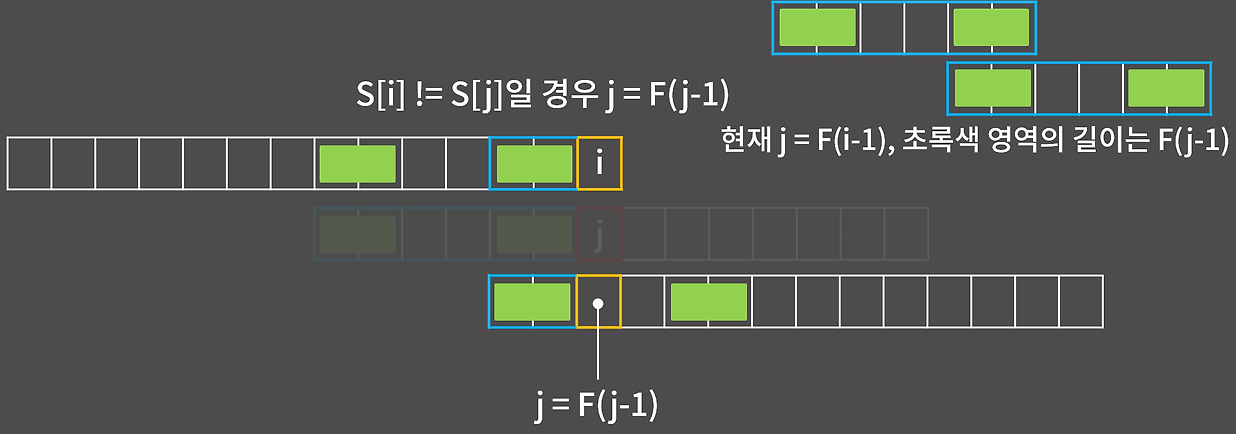 while(j>0 && s[i] != s[j]) j = f[j-1];