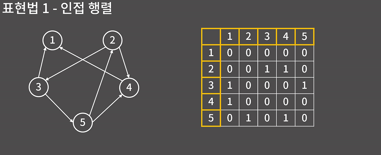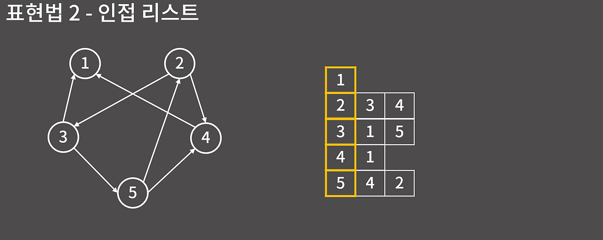 그래프를 표현하는 대표적인 방법은 다음 두 가지다.
