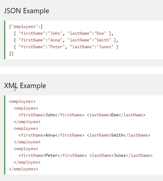 JSON의 경우 간단한 내용을 나타내기에 편하다.
