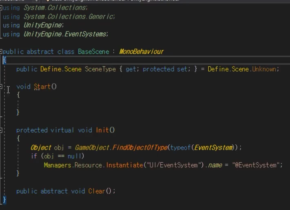 모든 씬 클래스의 부모와 같은 역할을 하게될 BaseScene