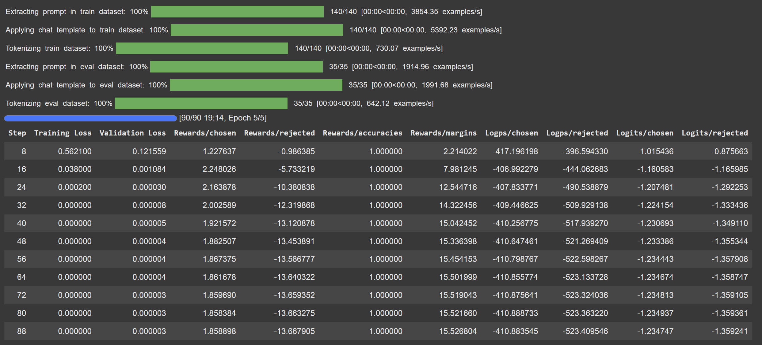 1) DPO 훈련 코드: https://drive.google.com/file/d/1SK3tY_XnDfLBtxmgGnErL67KQONkGyus/view?usp=sharing