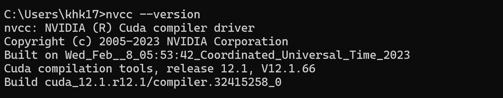 CUDA 툴킷과 함께 설치되는 CUDA 컴파일러 드라이버 도구인 nvcc는 항상 인식하도록 빌드된 CUDA 런타임 버전을 보고합니다. nvcc는 어떤 드라이버 버전이 설치되었는지, GPU 드라이버가 설치되었는지에 대해 아무것도 알지 못합니다.