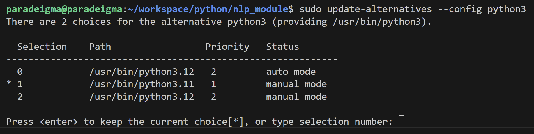 sudo update-alternatives --config python3