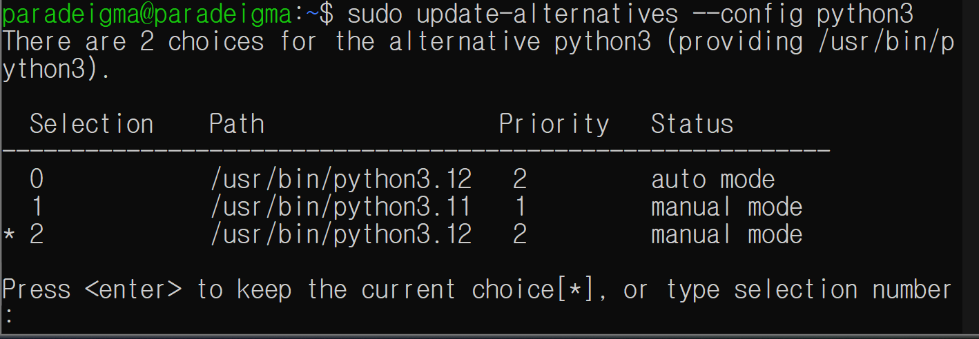 sudo update-alternatives --install /usr/bin/python3 python3 /usr/bin/python3.12 2