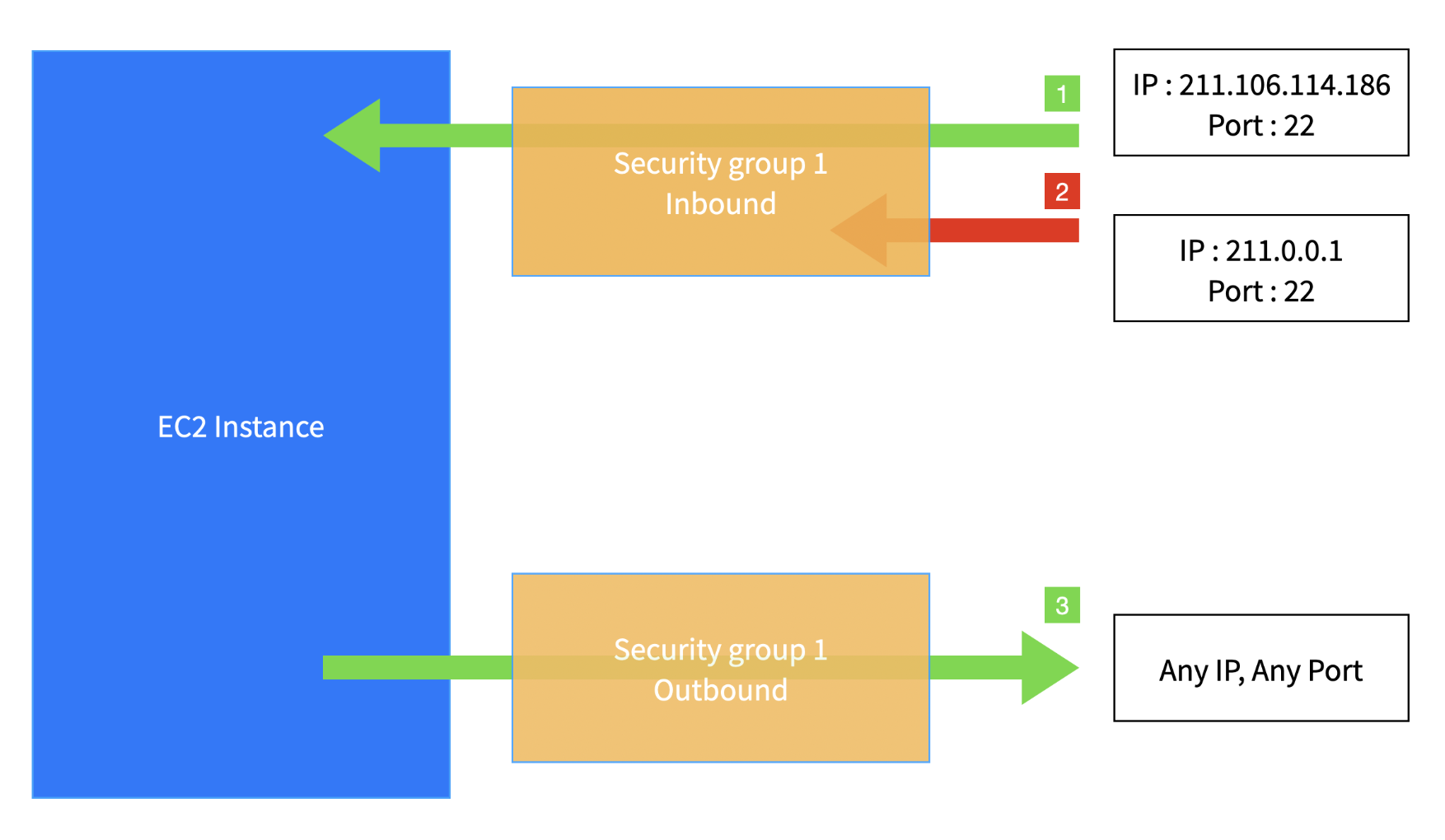 - EC2 인스턴스 안팎으로 트래픽이 허용되는 방식을 제어한다