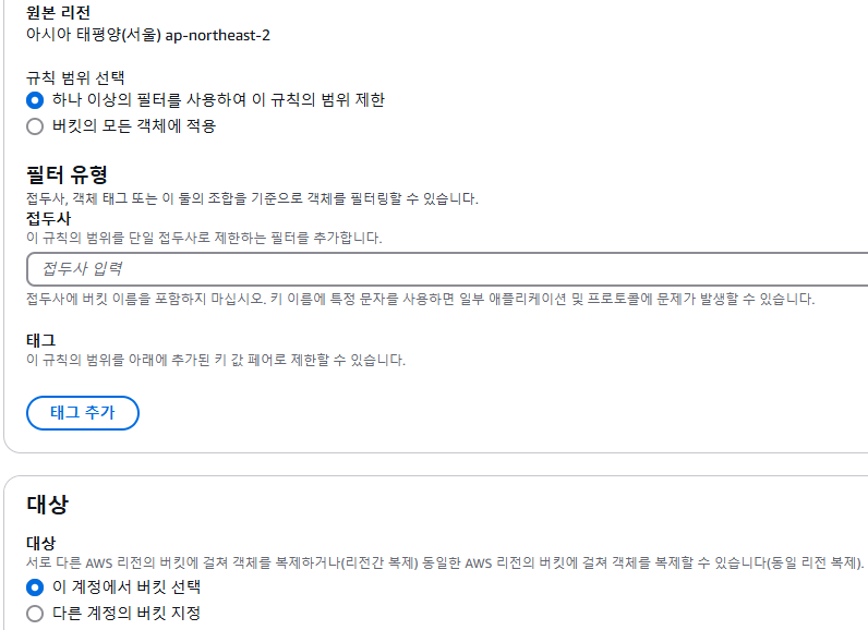 - 소스 버켓과 복제 대상 버켓 모두 버전 관리 기능을 활성화해야 한다