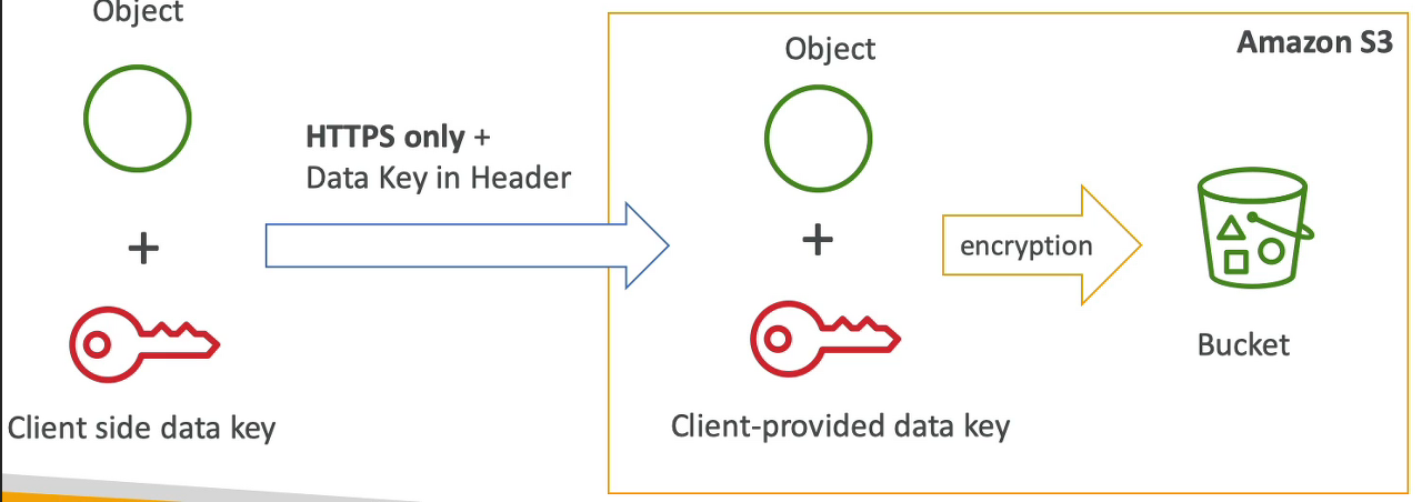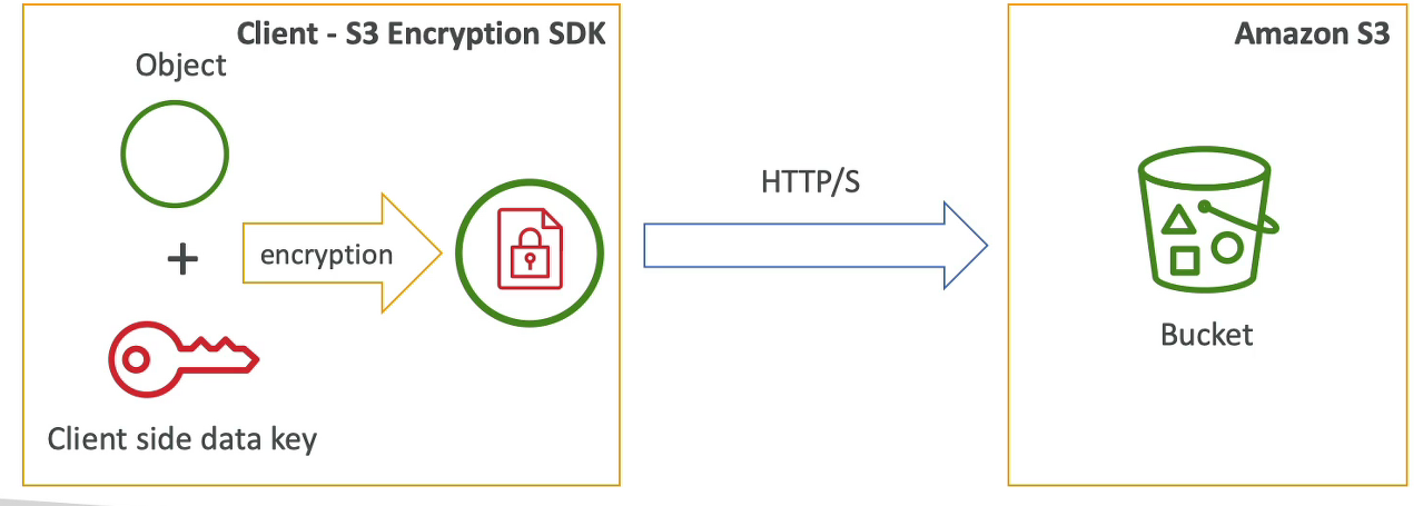 - 클라이언트 측 암호화: 클라이언트 측의 모든 걸 암호화한 다음에 S3에 업로드한다
