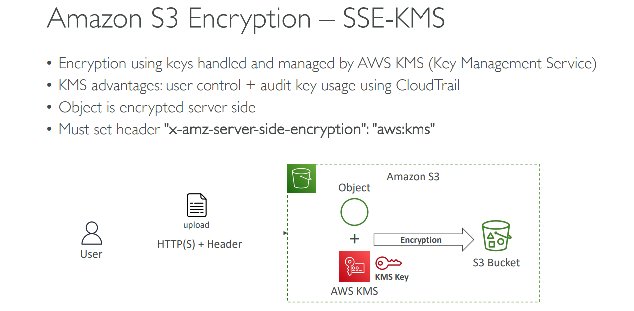 - SSE KMS: KMS키를 이용해서 암호화 키를 관리한다