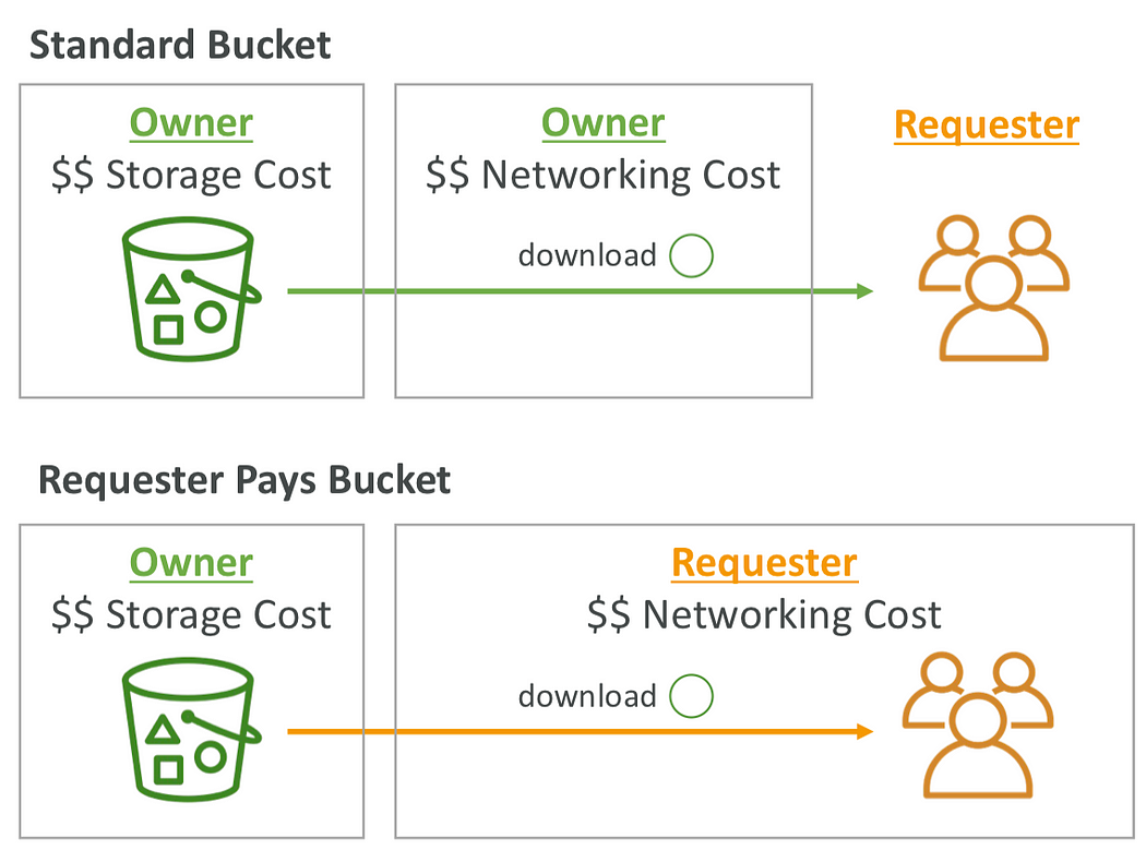 - 요청자 지불 버켓을 활성화하면 대형파일이 있고 일부 고객이 이를 다운로드하려고 하면 요청자가 돈을 낸다