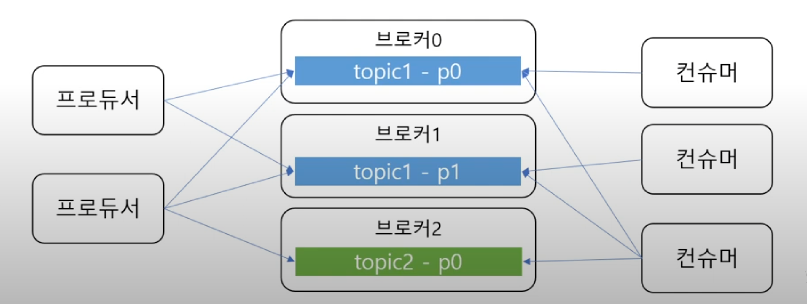 - 브로커들이 메시지들을 나눠서 저장하고 이중화처리도 하고 장애가 발생하면 대처도 한다