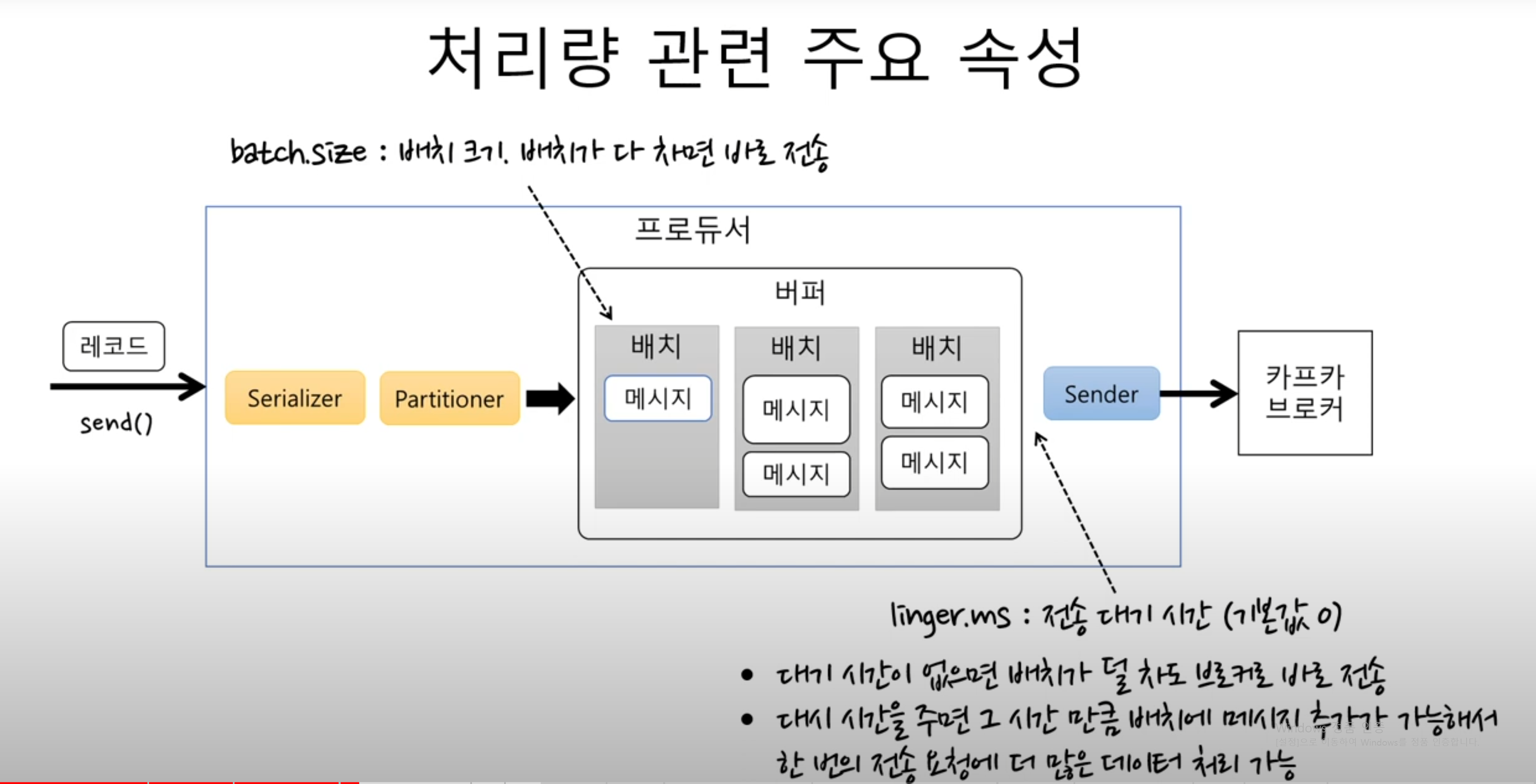- 배치사이즈가 너무 작으면 전송횟수가 많아지기 때문에 처리량이 떨어지게 된다