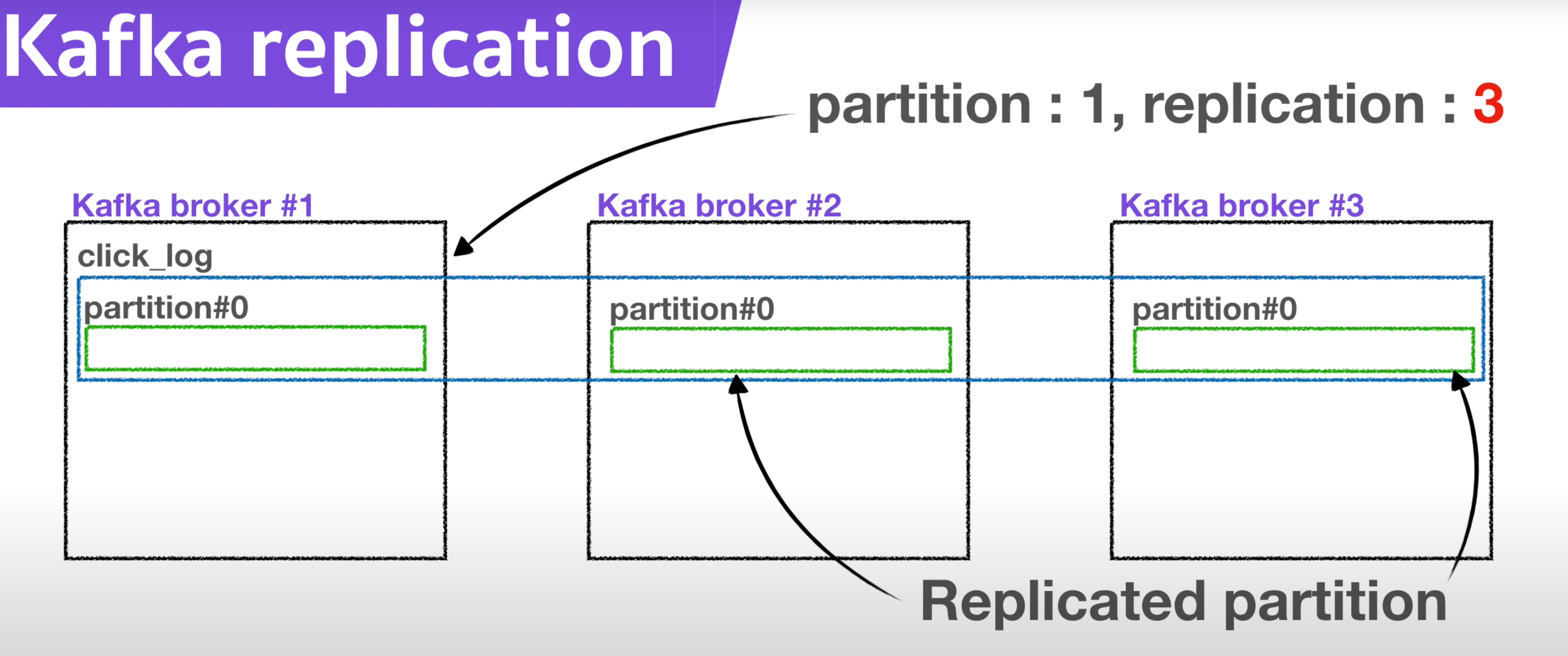 - 리플리카: 파티션의 복제본 -> 복제수만큼 파티션의 복제본이 각 브로커에 생긴다