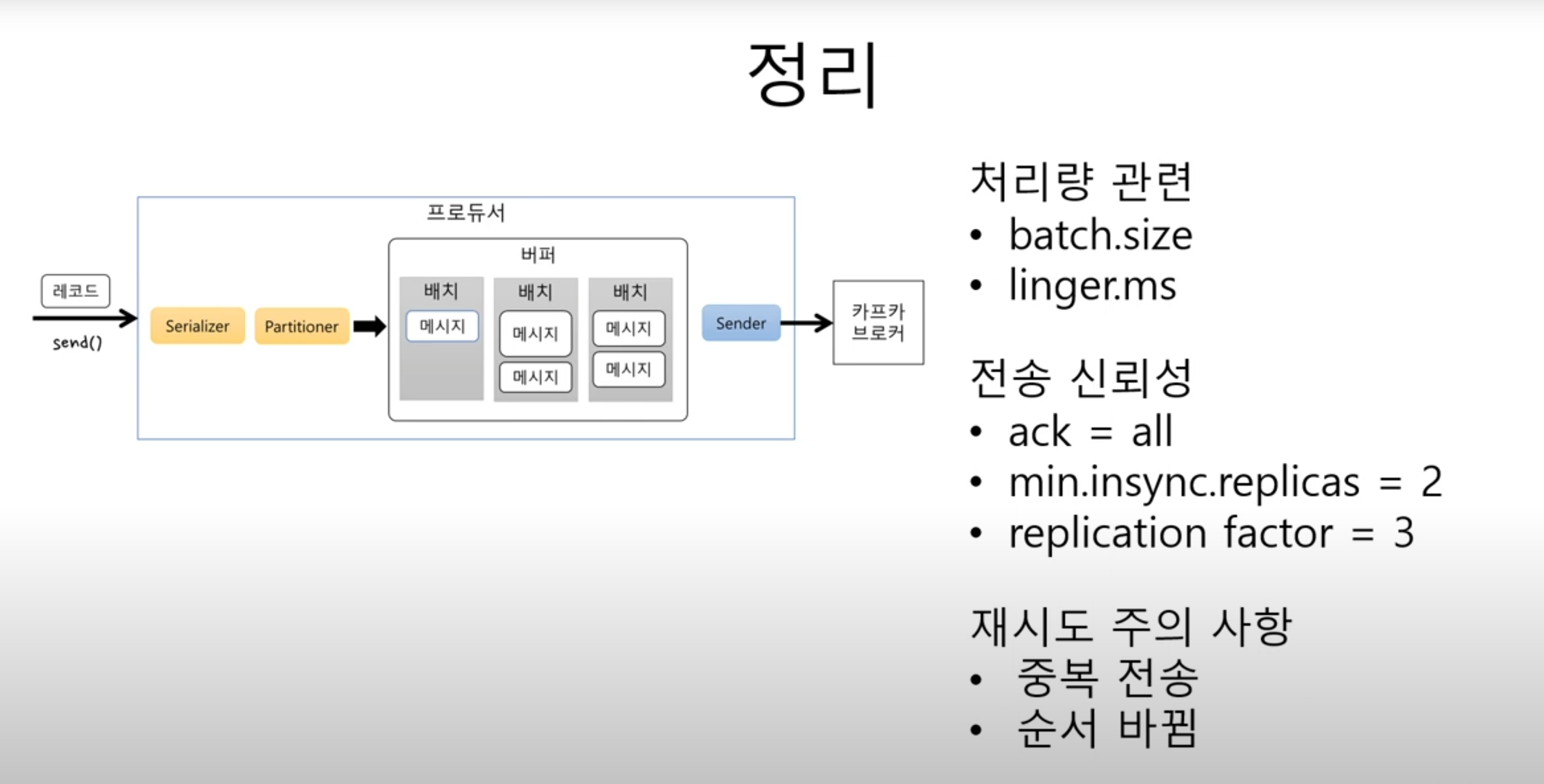 // 브로커 목록이나 키나 밸류를 직렬화, ack, batchSize를 지정한다