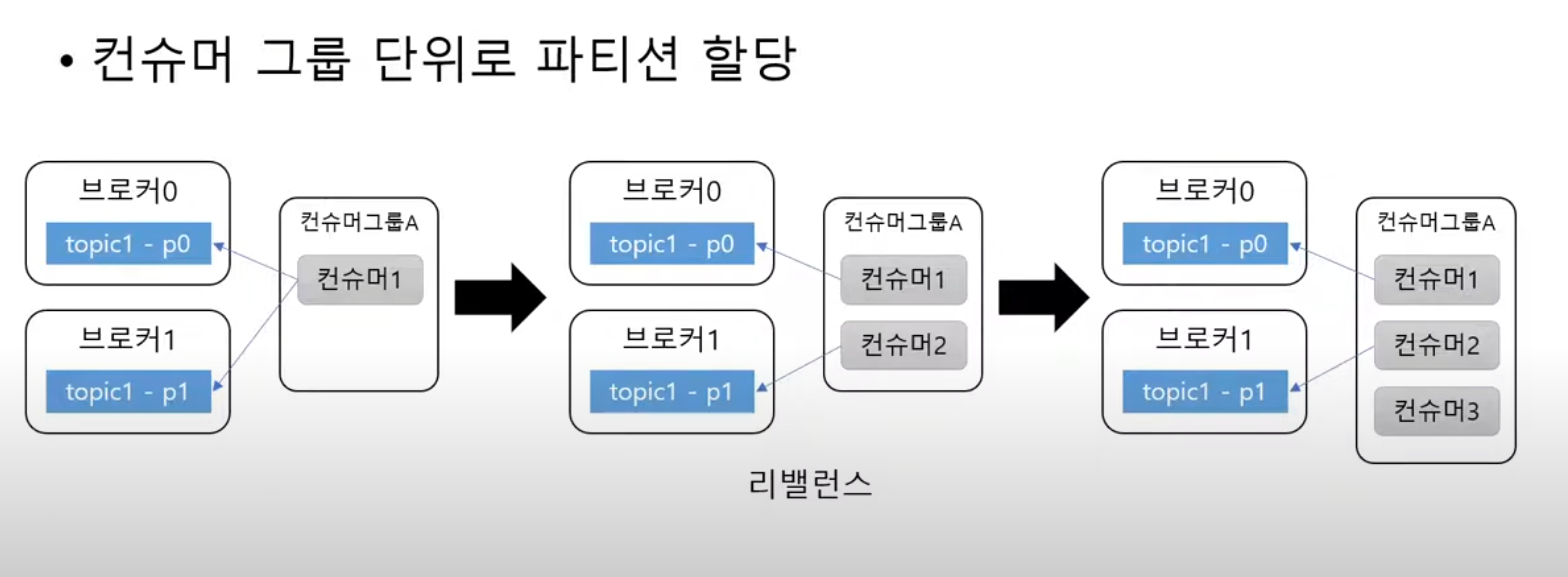 - 브로커에 연결할 때 어떤 컨슈머그룹에 속할지 지정을 해야한다